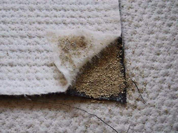 膨潤(rùn)防水毯是一種用于人工湖泊水景、垃圾填埋場(chǎng)、地下車庫、樓花園、水池、油庫化學(xué)品堆場(chǎng)等防滲漏的土工合成材料,它是由高膨脹性的鈉基膨潤(rùn)土填充在特制的復(fù)合土工布和無紡布之間,用針刺法制成的膨潤(rùn)土防滲墊可形成許多小的纖維空間,是膨潤(rùn)土顆粒不能像一個(gè)方向流動(dòng),遇水時(shí)在墊內(nèi)形成均勻高密度的膠狀防水層,有效的防止水的滲漏。膨潤(rùn)土防水毯按生產(chǎn)工藝可分為:針刺法鈉基膨潤(rùn)土防水毯、針刺覆膜法鈉基膨潤(rùn)土防水毯以膠粘法鈉基膨潤(rùn)土防水毯。 針刺覆膜法鈉基膨潤(rùn)土防水毯,是在針刺鈉基膨潤(rùn)土防水毯的非織造土工布的外表面上復(fù)合一層高密度聚乙烯土工膜。